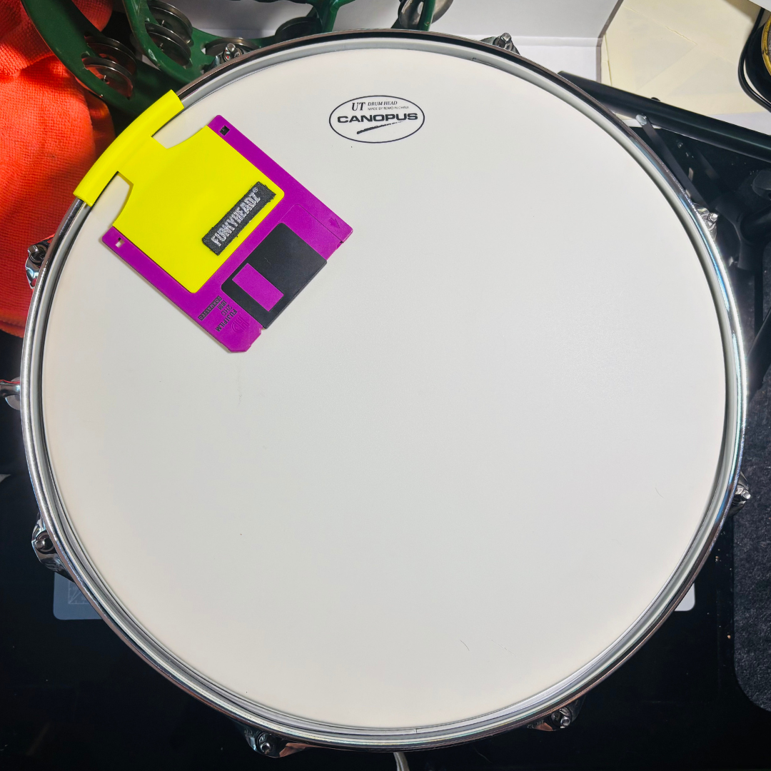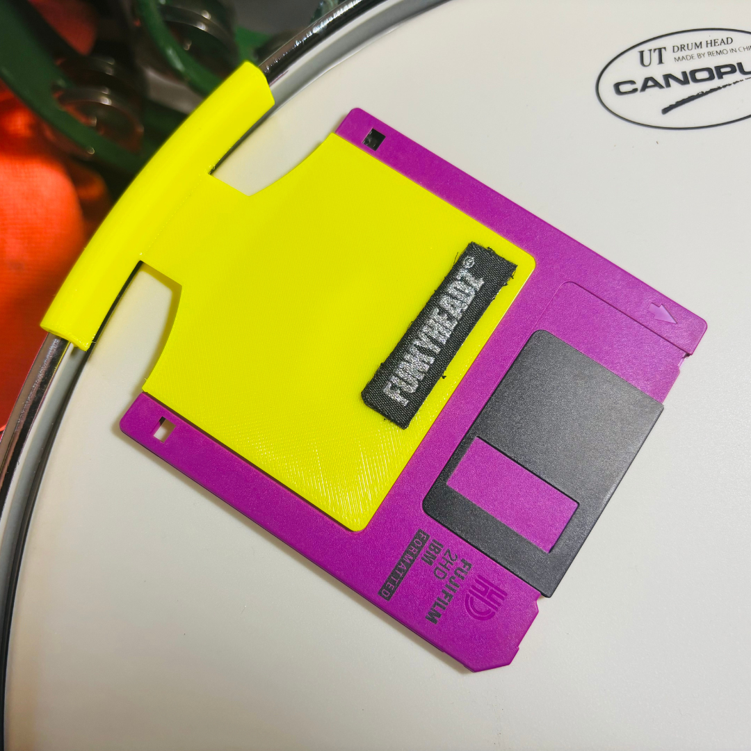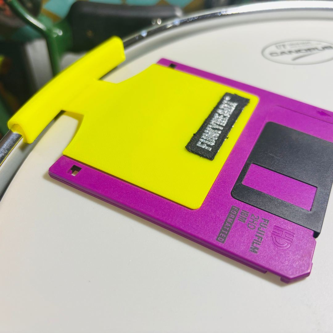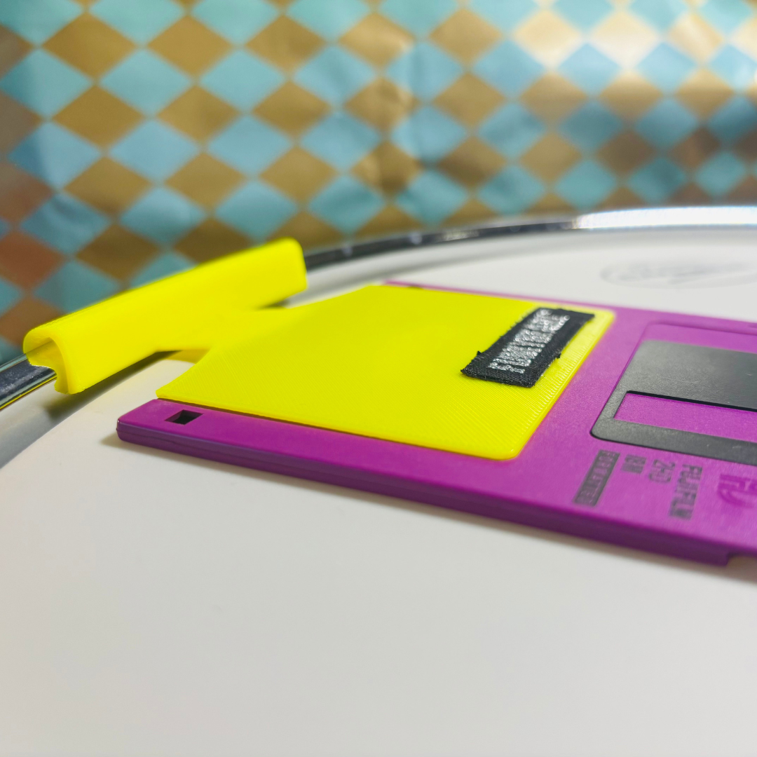 Accessorio stampato in 3D e realizzato in TPU ultra flessibile e resistente, crea un effetto “gate analogico” per tamburi, offrendo una risposta sonora unica. In pratica, quando colpisci la pelle del tamburo, il floppy disk da 3,5″ si solleva leggermente in risposta al colpo, aggiungendo un secondo suono immediato e complementare al tuo colpo iniziale, arricchendo texture e groove.